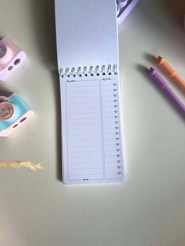 دفترچه سیم از بالا طرحدار کرومی که صفحات داخلش طرح داره و می توانید به عنوان تودولیست برای یادداشت های روزانه و انجام فعالیت ها استفاده کرد
