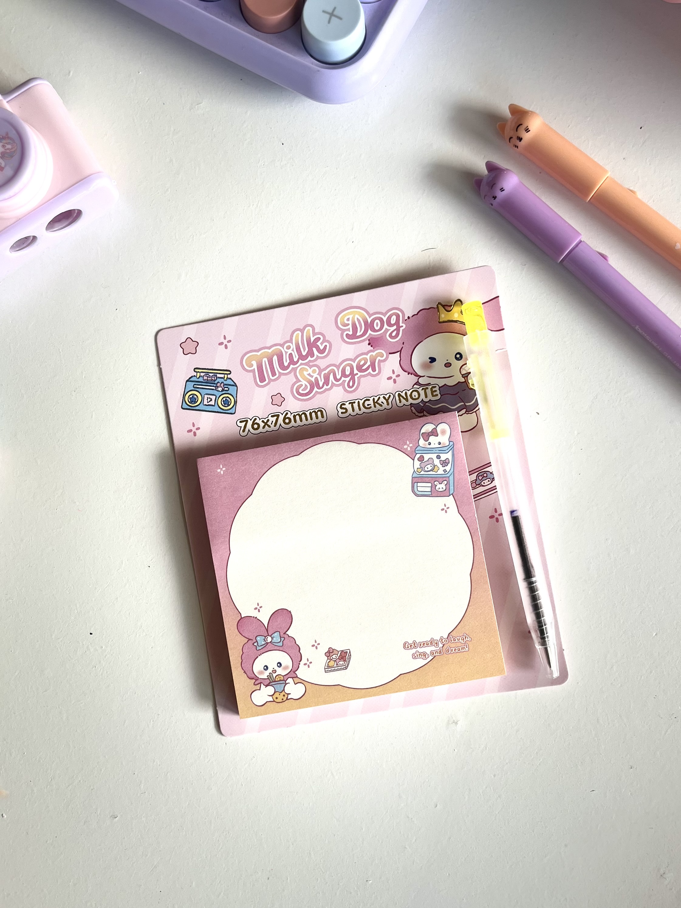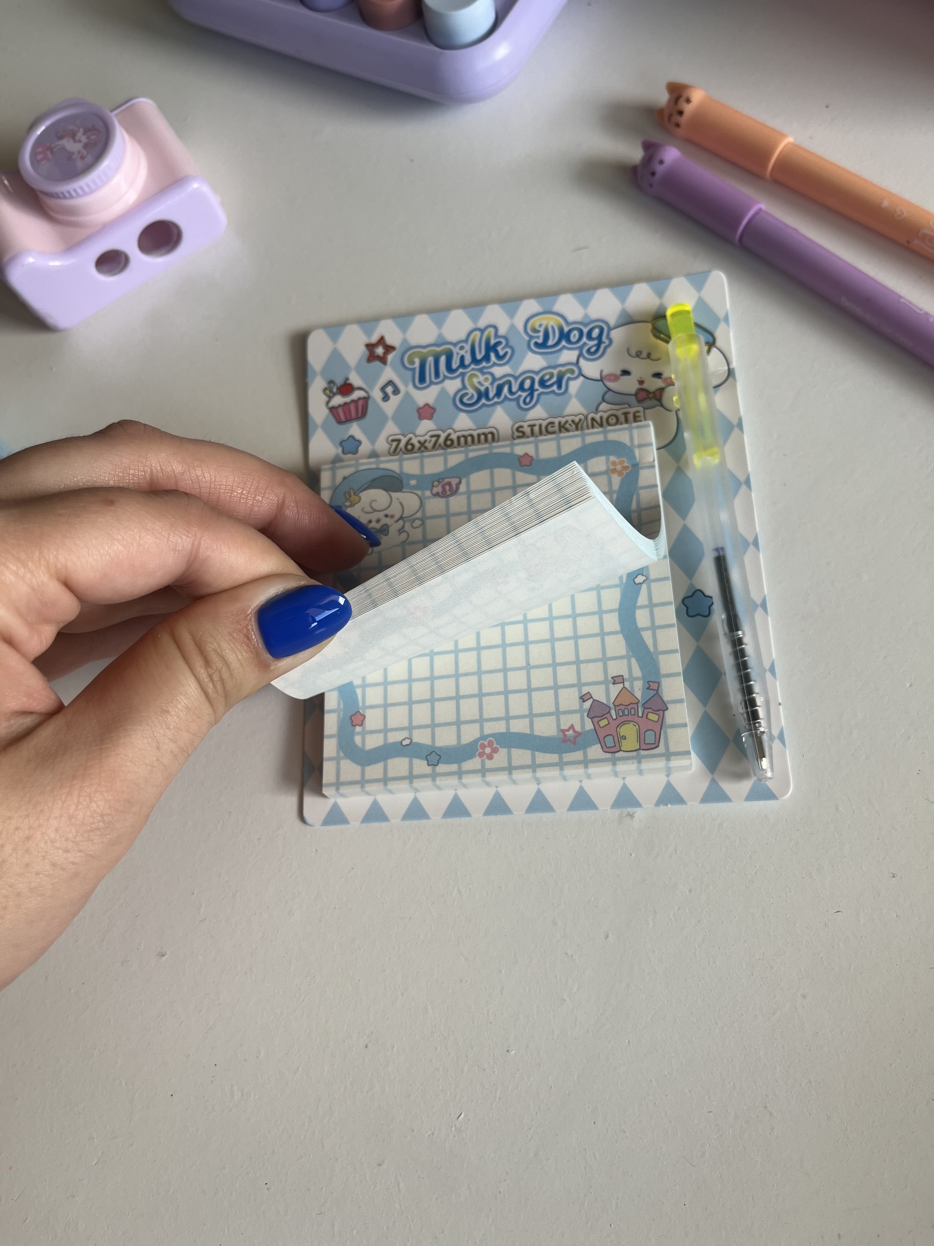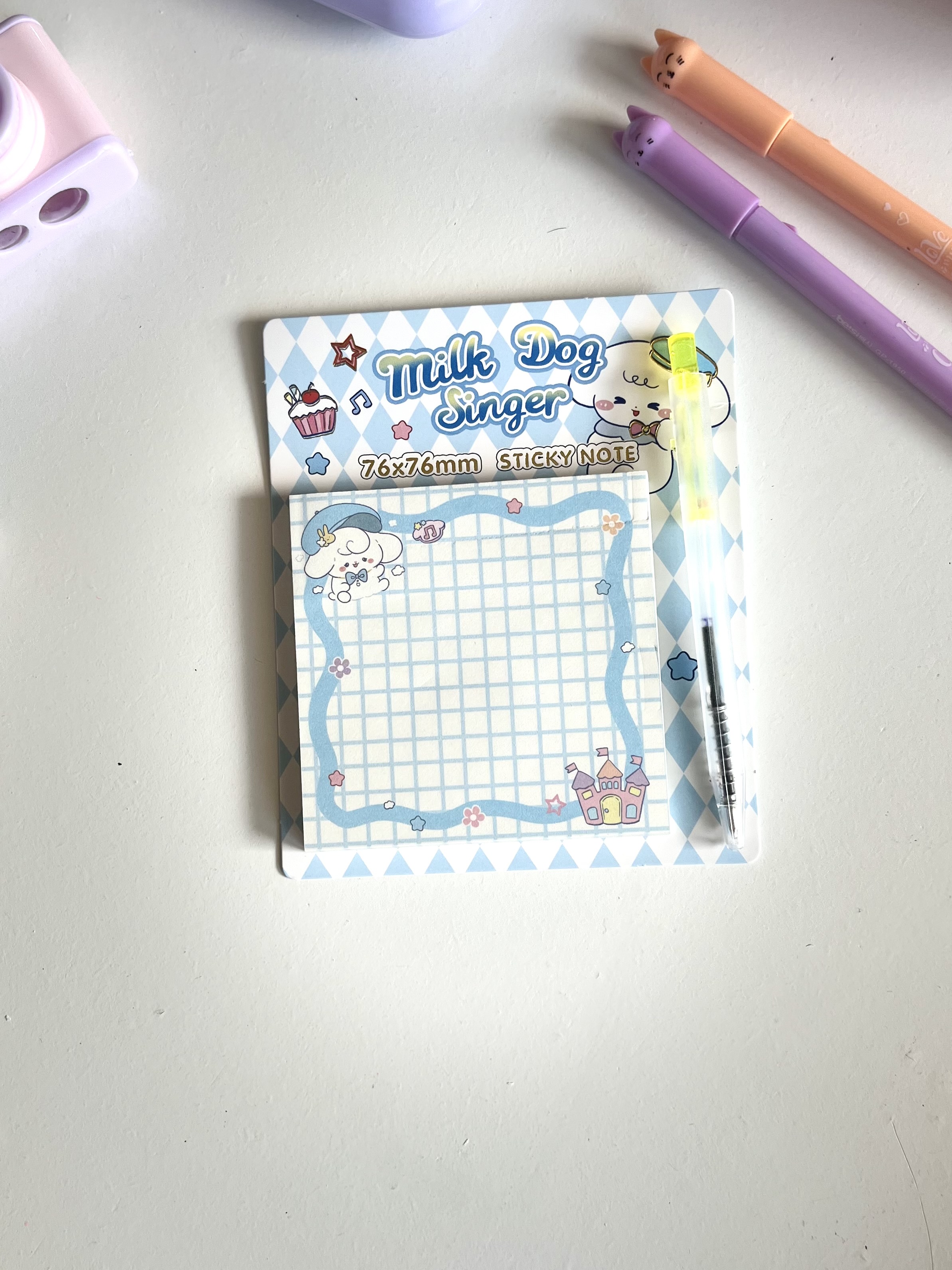 استیک نوت های مربعی برای یادداشت کردن نکات درسی بسیار مفیده چون سایز مناسبی داره و می توانید روی برگه های دفتر وکتاب ها بچسبانید.در کنار ظاهر خوشگل و فانتزیش یه خودکار کوچولو و فشاری هم داره که راحت می توانید هر زمان خواستید نکات رو یادداشت کنید و دیگه فراموش نکنید🫶🏻
