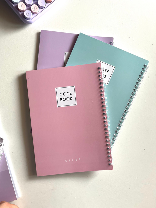 سیم دوردیفه اش باعث مقاومت جلد وبرگه ها شده وکیفیت اش رو فوق العاده کرده،رنگ بندی پاستیلی اش هم با بیشتر لوازم تحریر خا ست میشه 🤌🏻✨